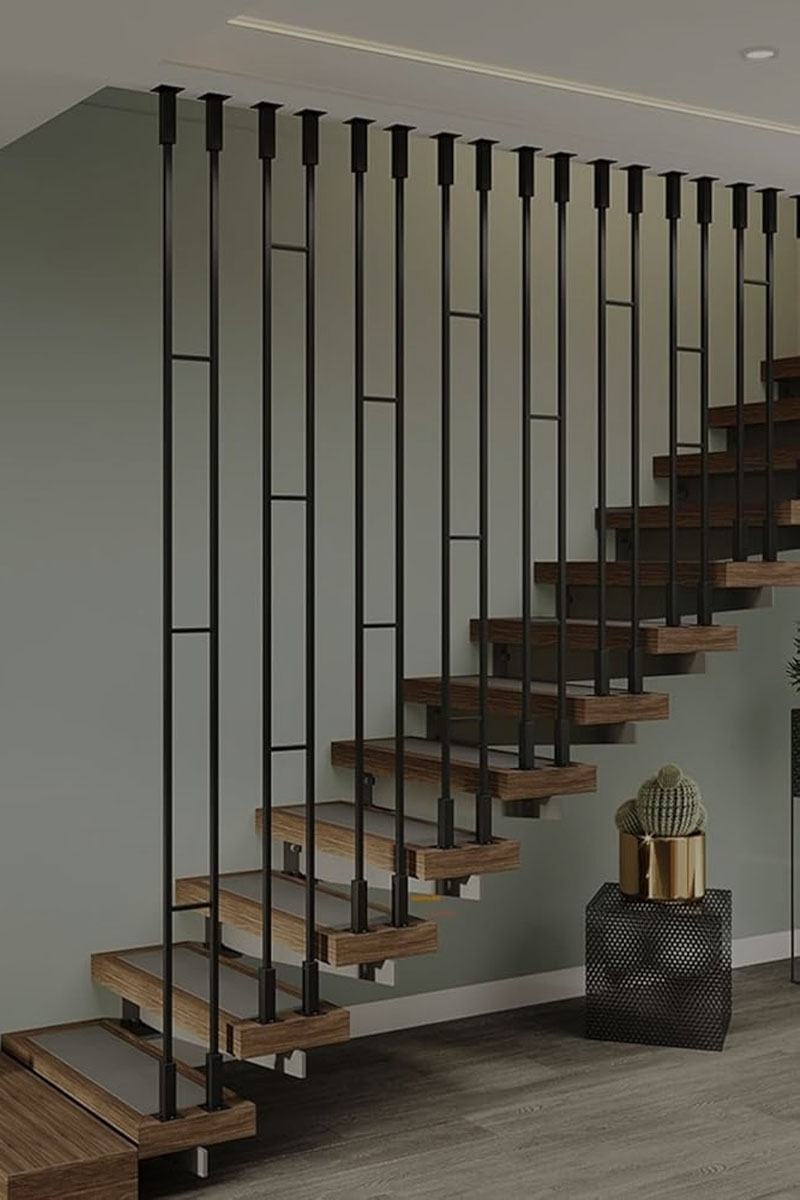 Custom staircase railings crafted with high-grade stainless steel materials.